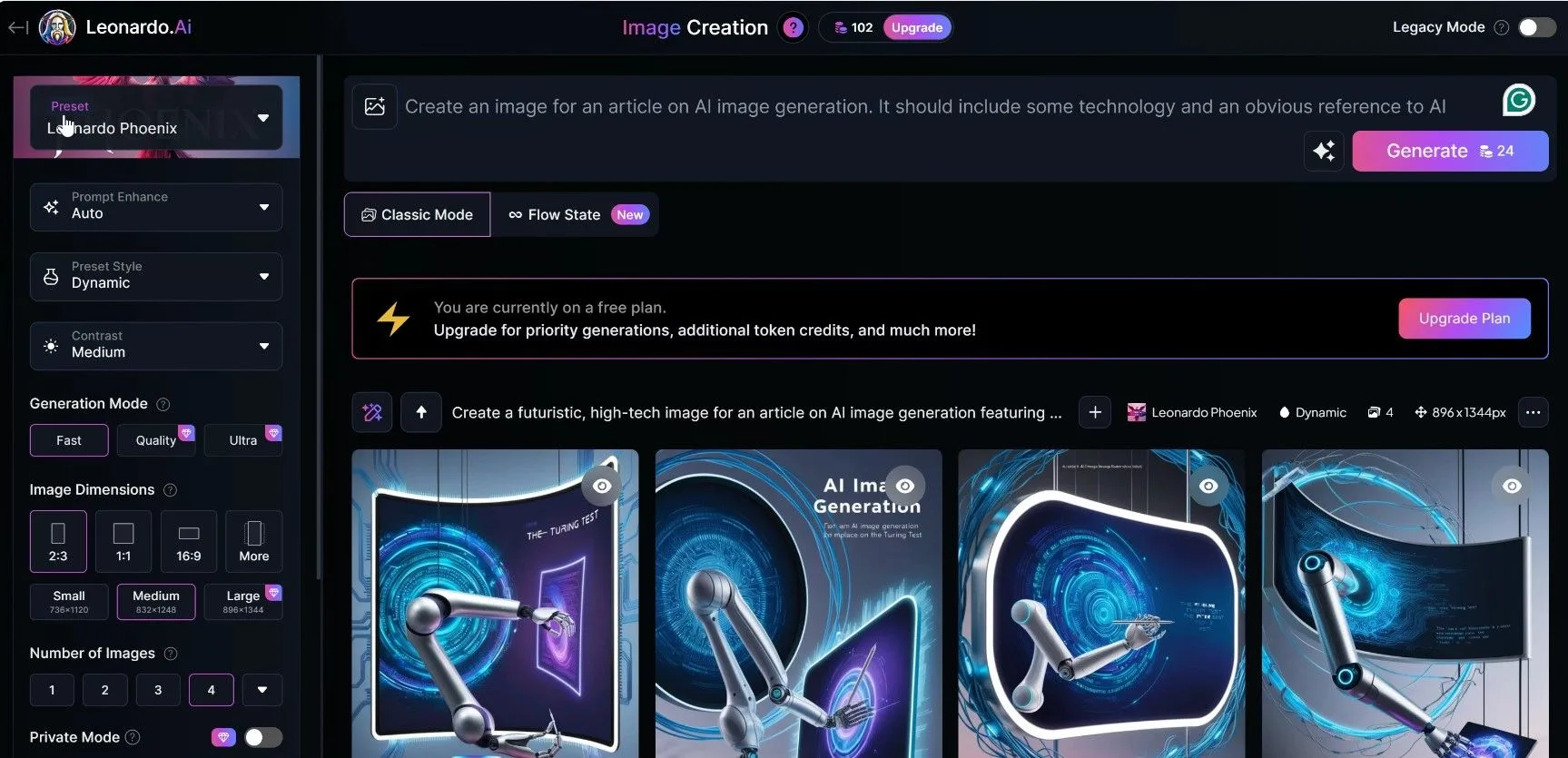 Creating custom images or finding stock images has always been both time-consuming and expensive for me. I used to spend a lot of time sourcing or designing images to complement my projects, but now I rely on the free version of Leonardo.AI for a lot of my artwork. The process is straightforward, and the free version allows adjustments for contrast, dimensions, and preset styles.