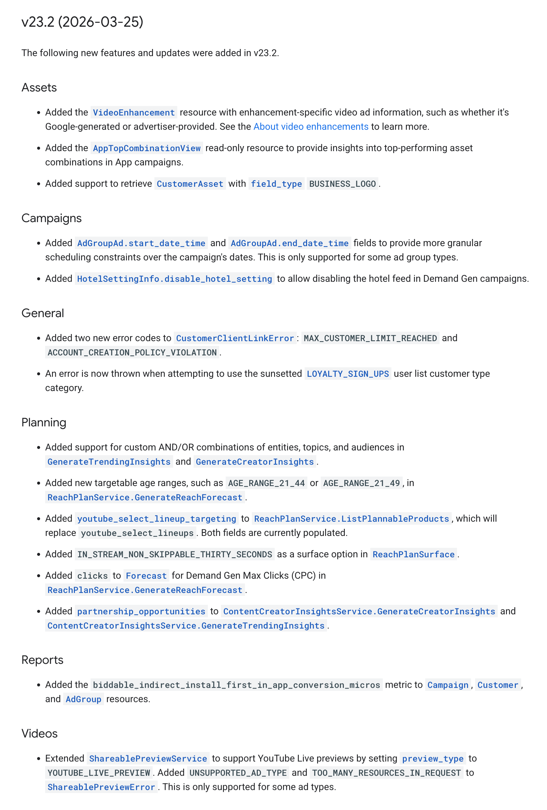 Digital Phablet reports that Google Ads has rolled out a minor update to its API, now reaching version 23.2. The latest release introduces the VideoEnhancement resource, updates to HotelSettingInfo, and various other enhancements. The platform’s official blog states that deploying v23.2 requires updating client libraries and code to utilize the new features. All relevant libraries and examples have been made available for developers.