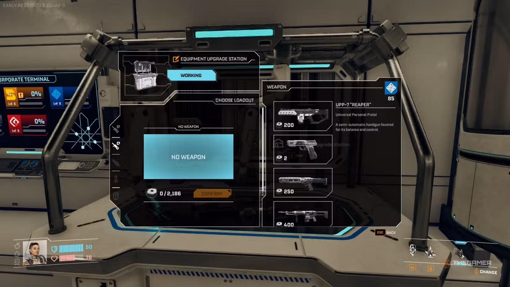 Your first weapon is the UPP-7 Reaper Pistol, which you unlock by completing the second contract for Griffits Blue Corporation. Your secondary weapon at this stage is grenades, which are unlocked at level 3 with the same company.