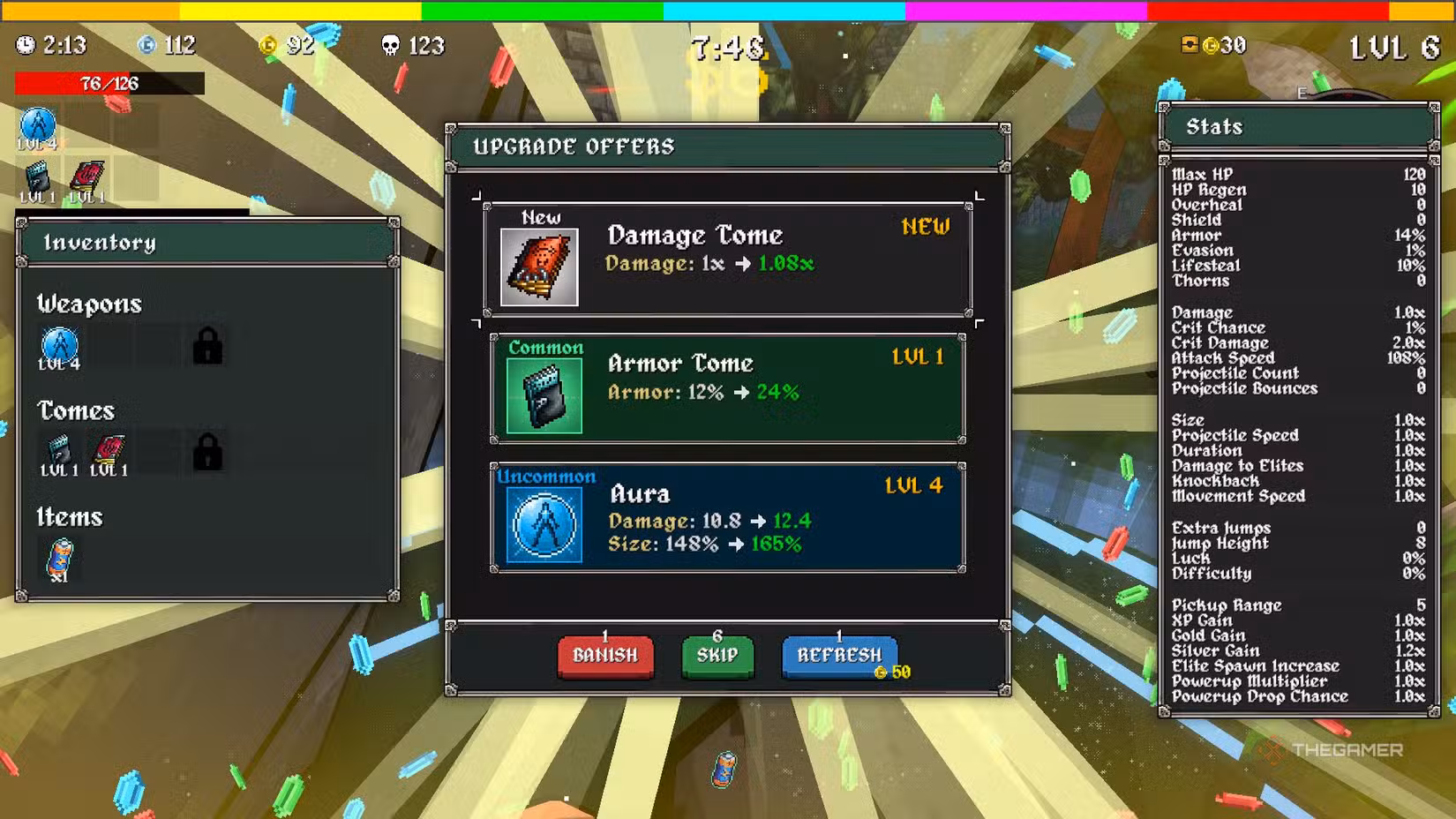Megachad benefits most from tomes that increase his durability and endurance, allowing his aura and powers to shine.
