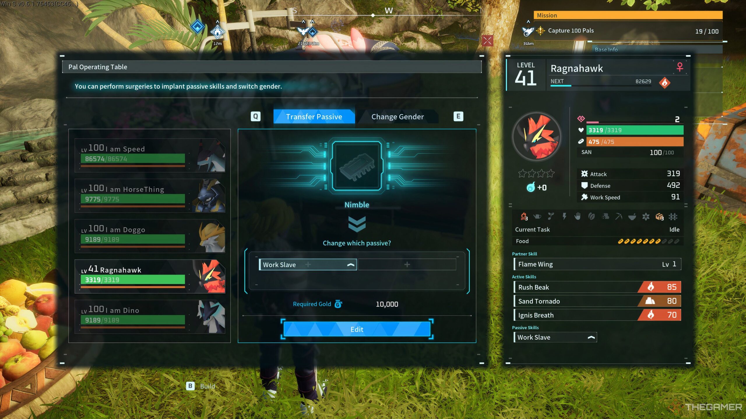 To modify a Pal, interact with the Pal Surgery Table, select the desired Pal under Transfer Passives, and choose an Implant from the list to apply. Once applied, the change is permanent.
