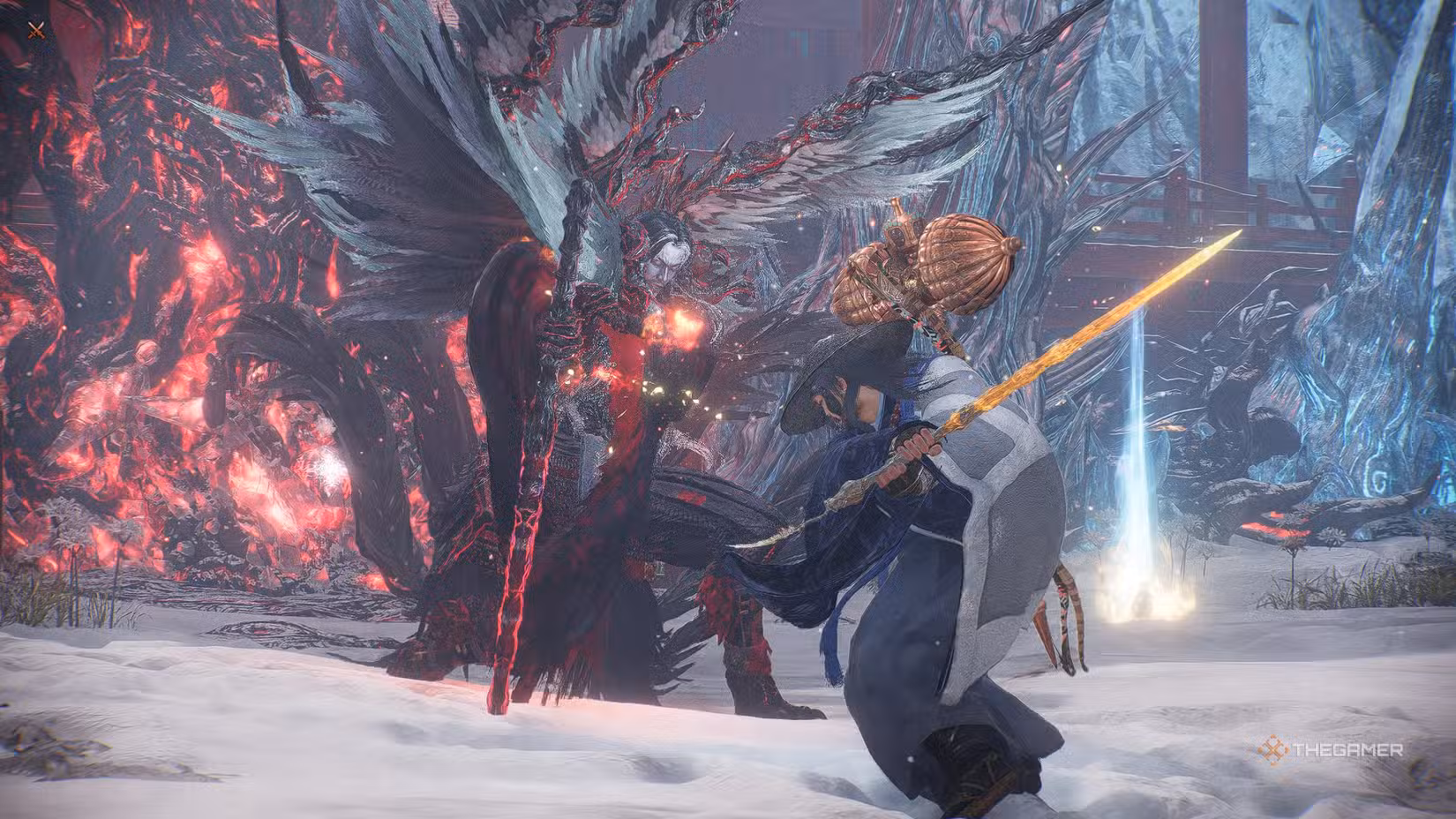 Before facing him, equip gear that boosts wind damage resistance and consider using buffs to increase your damage or weaken Yoritomo’s defenses. It’s also helpful to use magic or weapons that have lightning damage to apply a debuff and slow him down, as he’s quite mobile.