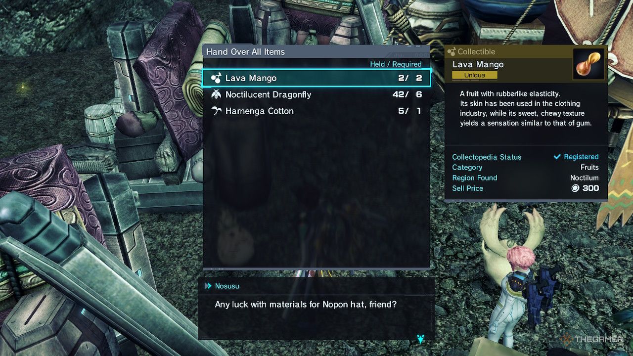 Before you can start crafting hats, you’ll need to gather some initial materials: six Noctilucent Dragonflies, one piece of Harnenga Cotton, and two Lava Mangoes. You can find these items in Noctilum, and they will be marked on your map if you’re still searching for them.