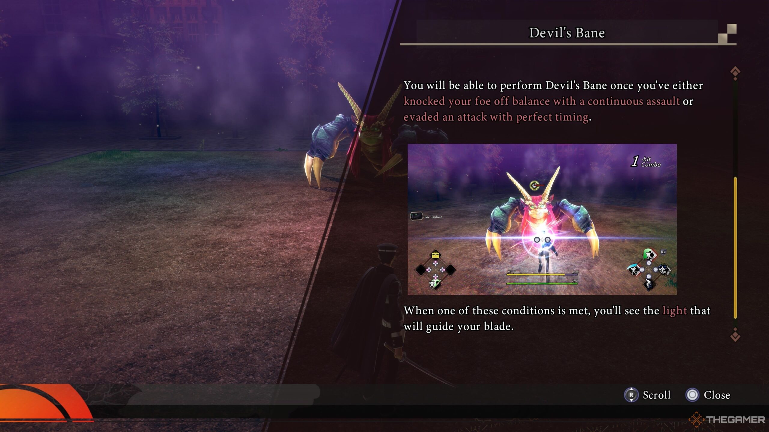 Once you’ve fully explored the Dark Tsukudo-cho area in your quest from chapter one, you will face Tsuchigumo after the challenging Nethergate fight, and find Rin unconscious. A brief dialogue occurs before the battle, but Gouto-Doji will interrupt to teach you how to use Devil’s Bane against Tsuchigumo. This can only be done if you: