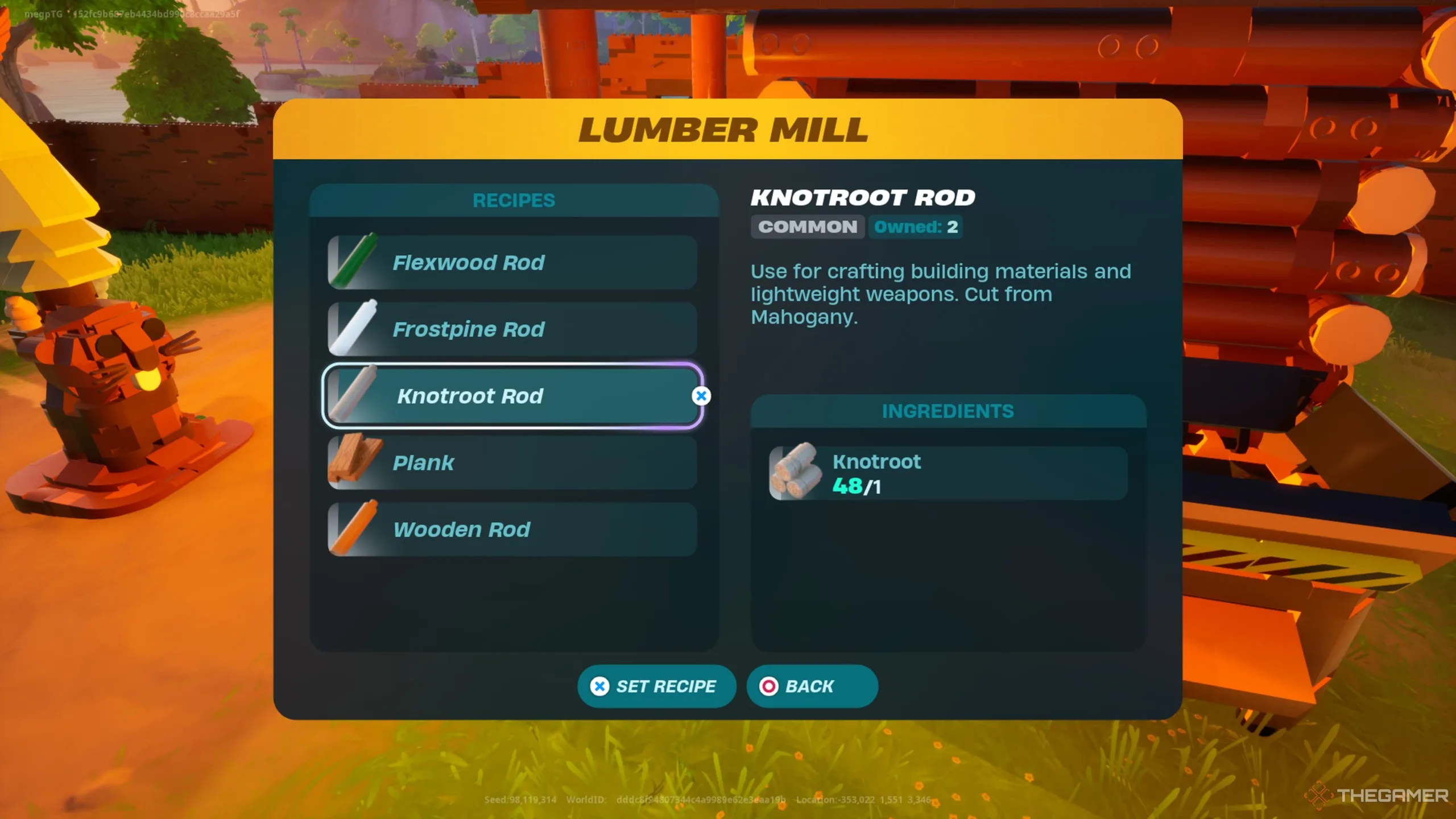 Once you’ve gathered Knotroot, you can use the Lumber Mill, which costs 40 Wood to craft, to produce Knotroot Rods. These more advanced Rods will enable you to create stronger tools and weapons.