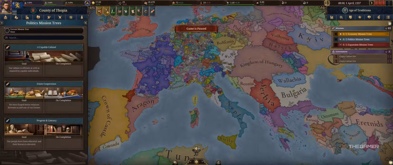 Europa Universalis 5 can feel overwhelming because of its large scope, but it includes guided beginner missions that help you learn the main systems. These early tasks act as a tutorial, introducing you to key mechanics like managing your internal development, overseeing provinces, and working with your powerful Estates.