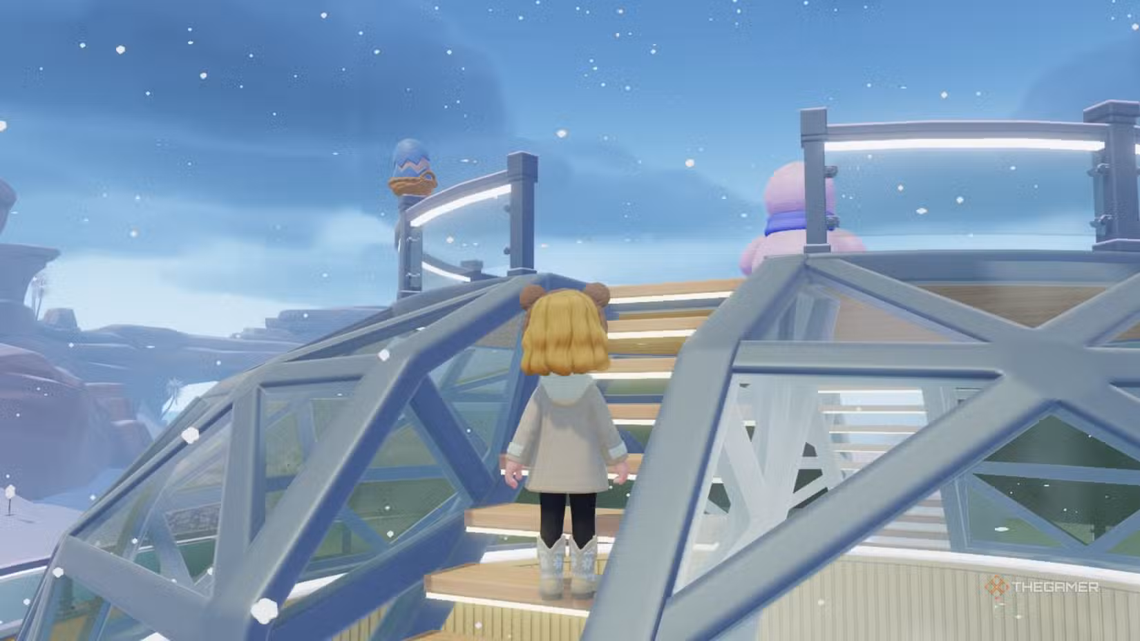 To find the snowman bubble, go to Plot 4 on the map, which is where the player homes are. Head north along the road. Opposite the large windmill, there’s a signpost, and floating around it is the snowman bubble. You don’t need to climb or parkour; wait until the bubble floats underneath the sign and then jump to pop it.