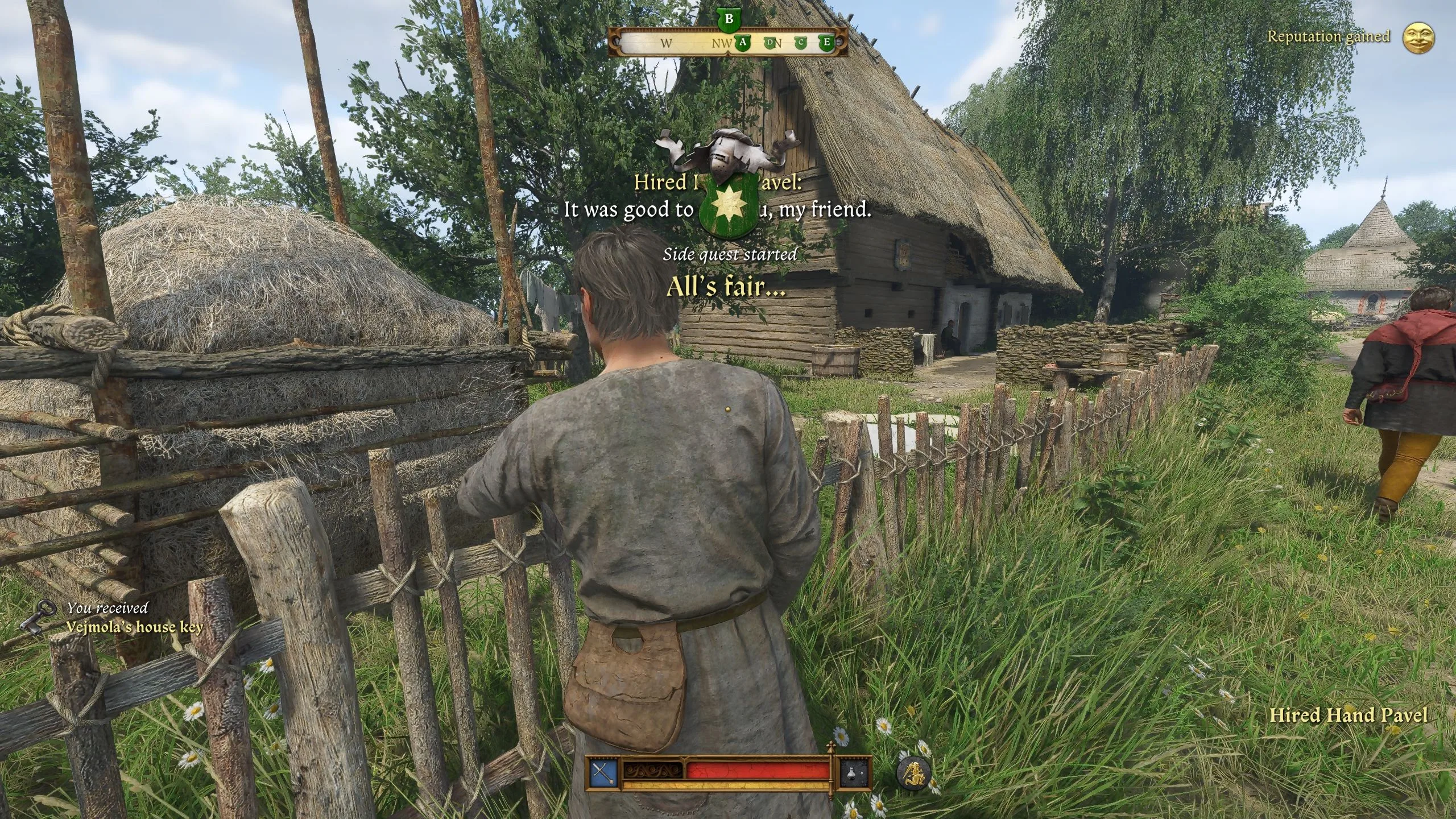 To kick off the All’s Fair quest, head over to Wysoka, situated to the west on the map. To the south of this village, you will encounter Hired Hand Pavel. Speak with him to begin your adventure.