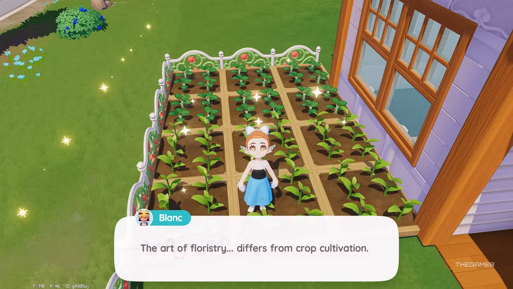 One of the first things you’ll learn is gardening, and Blanc is a great teacher. He’ll give you your first garden plots and a watering can. To start, place the plots on your Home Lot, then approach them with seeds from your inventory.