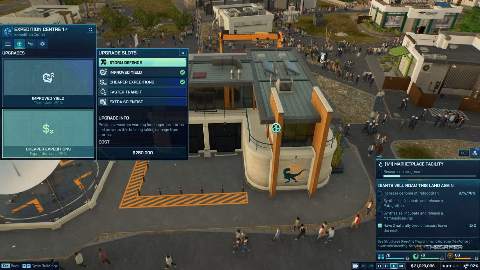 Additionally, you’ll need a Science Center for analyzing fossils once your team returns from expeditions and for selling extra minerals found. Extracting genomes requires a scientist or two with specific Genetics skill points.