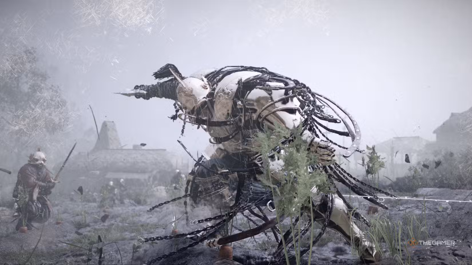 Once you arrive near the crop fields leading into the village, you’ll notice a large enemy force gathered there, including the big boss himself, Sir Catfish. When you get close, Sir Catfish will spot you and start attacking.