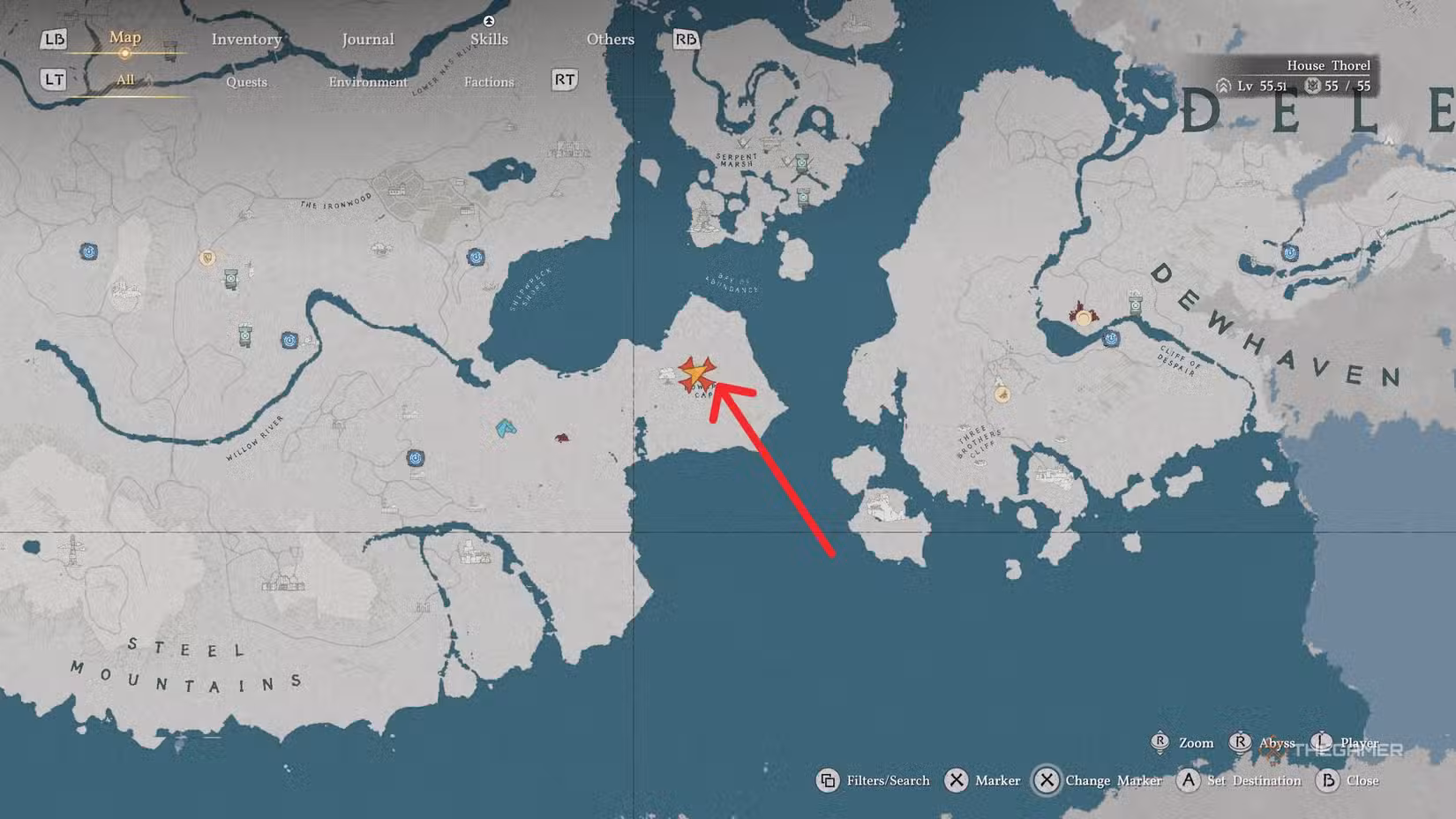 Alternatively, you can head south of Demeniss to find Bowsprit Cape on the peninsula near the Bay of Abundance. Look for a large, broken elevator lying on the ground at an angle. This is the key area where the puzzle is located.