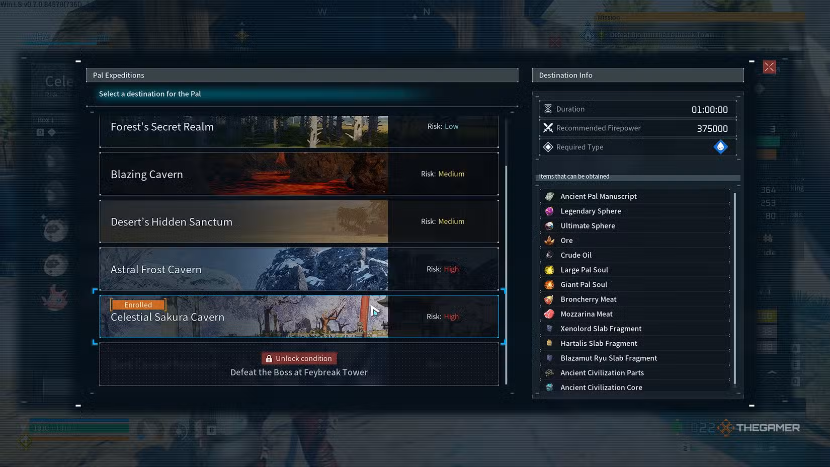 Before you can face Hartalis, you must defeat Saya and Selyne at Sakurajima Tower. After that, you can send your Pals on expeditions from your base. Both Sakurajima Tower and Feybreak Tower provide a chance to earn Hartalis Tablet fragments as expedition rewards.