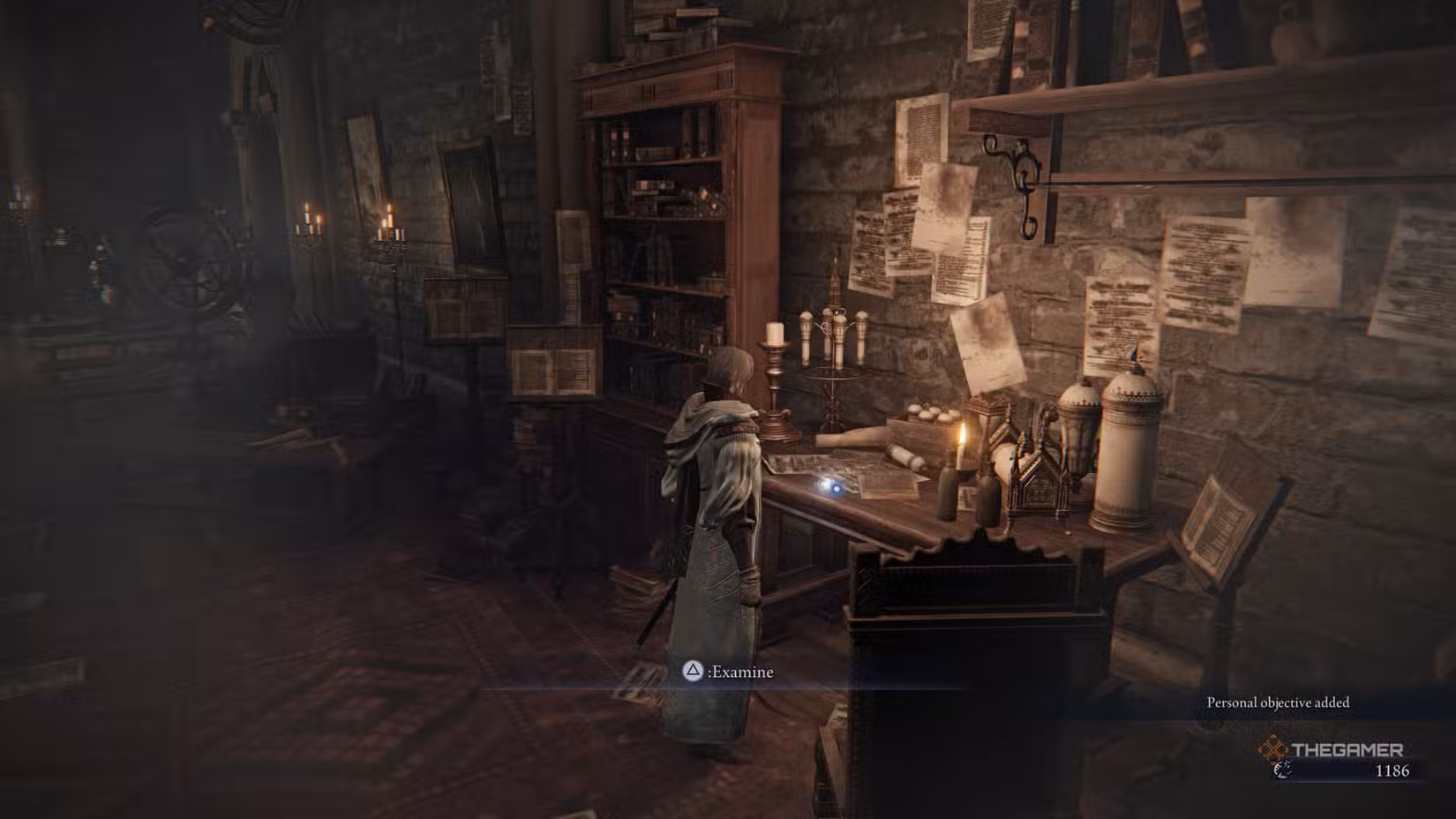Proceed through the hole, interact with a door, then go back. You’ll face a few enemies—prepare accordingly. Here’s a guide on the Scholar build and relics to help. Once finished, return to the locked door, now openable, and interact with the desk and the character trapped in crystal in the same room. Finish the Remembrance to earn the Cleansing Tear relic.