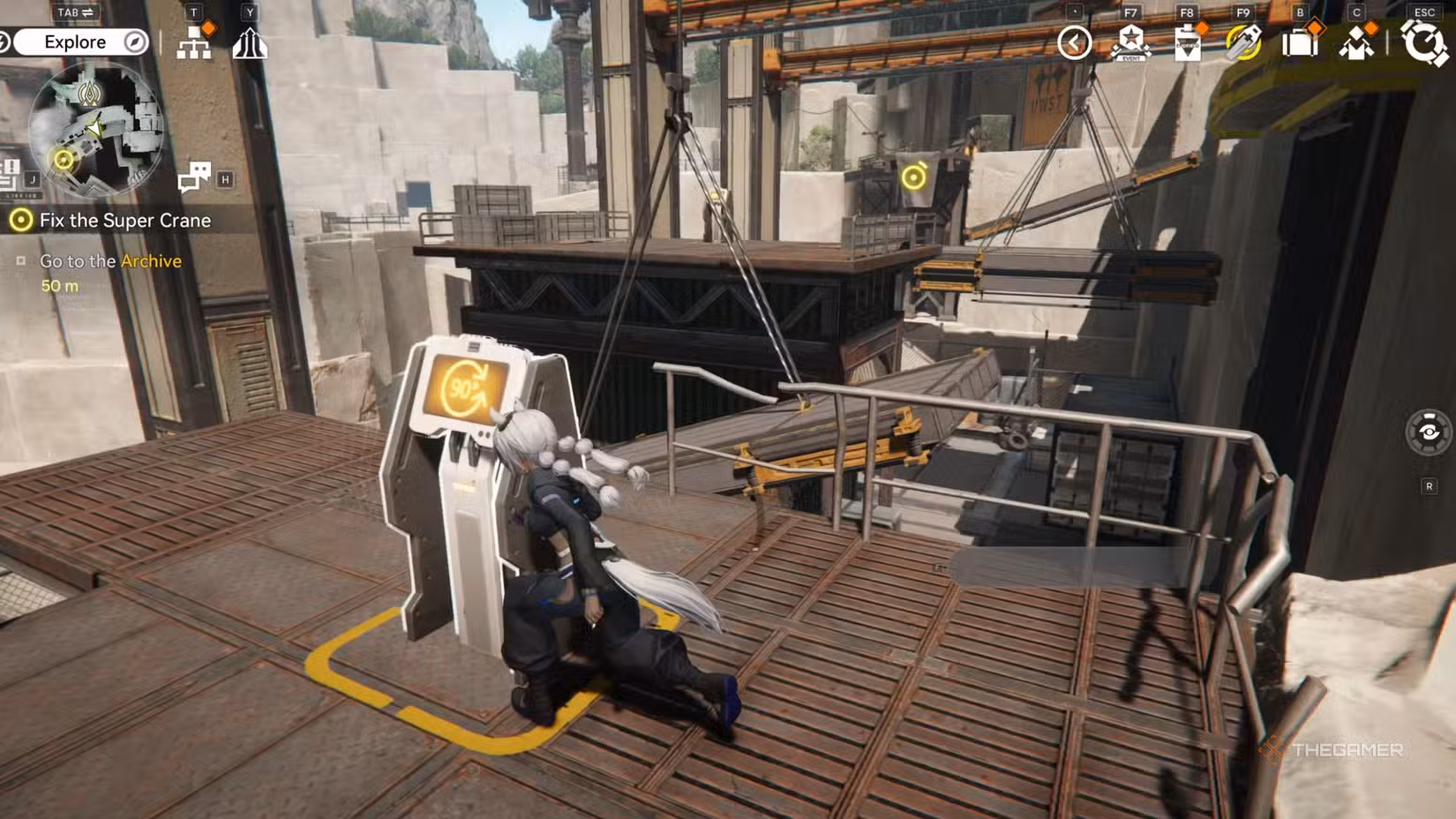 After finishing the Quarry Rescue quest and talking to the UWST worker, he will guide you to a machine that needs fixing. You’ll need a specific puzzle piece to repair it. Once you’ve interacted with the mechanism, go to the large platform marked with a yellow icon and press the terminal on the right.