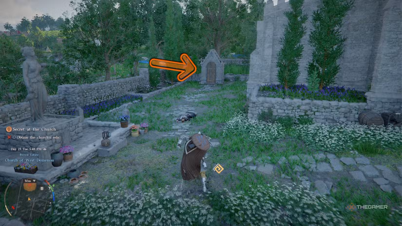 Once you speak to the NPC who’s trying to protect herself in a shack, she’ll inform you that the relic is inside a secret basement. After this conversation, a part of the map near the main church will be marked. You can search for the basement by heading to the church but don’t need to go inside it.