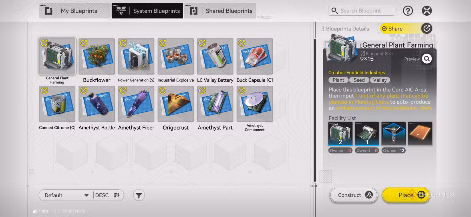 - Shared Blueprints – Blueprints shared by friends or community members via codes.