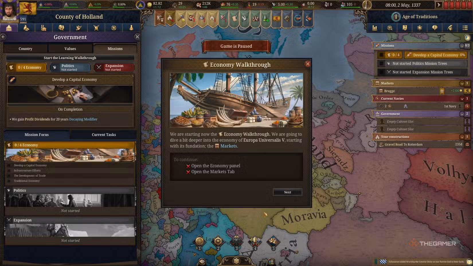 When you start a new game in Europa Universalis 5, the game prompts you to select one of three mission trees: Economy, Expansion, or Politics. Each tree is rich with content, but you can only pursue one at a time, so choose wisely to align with your goals.