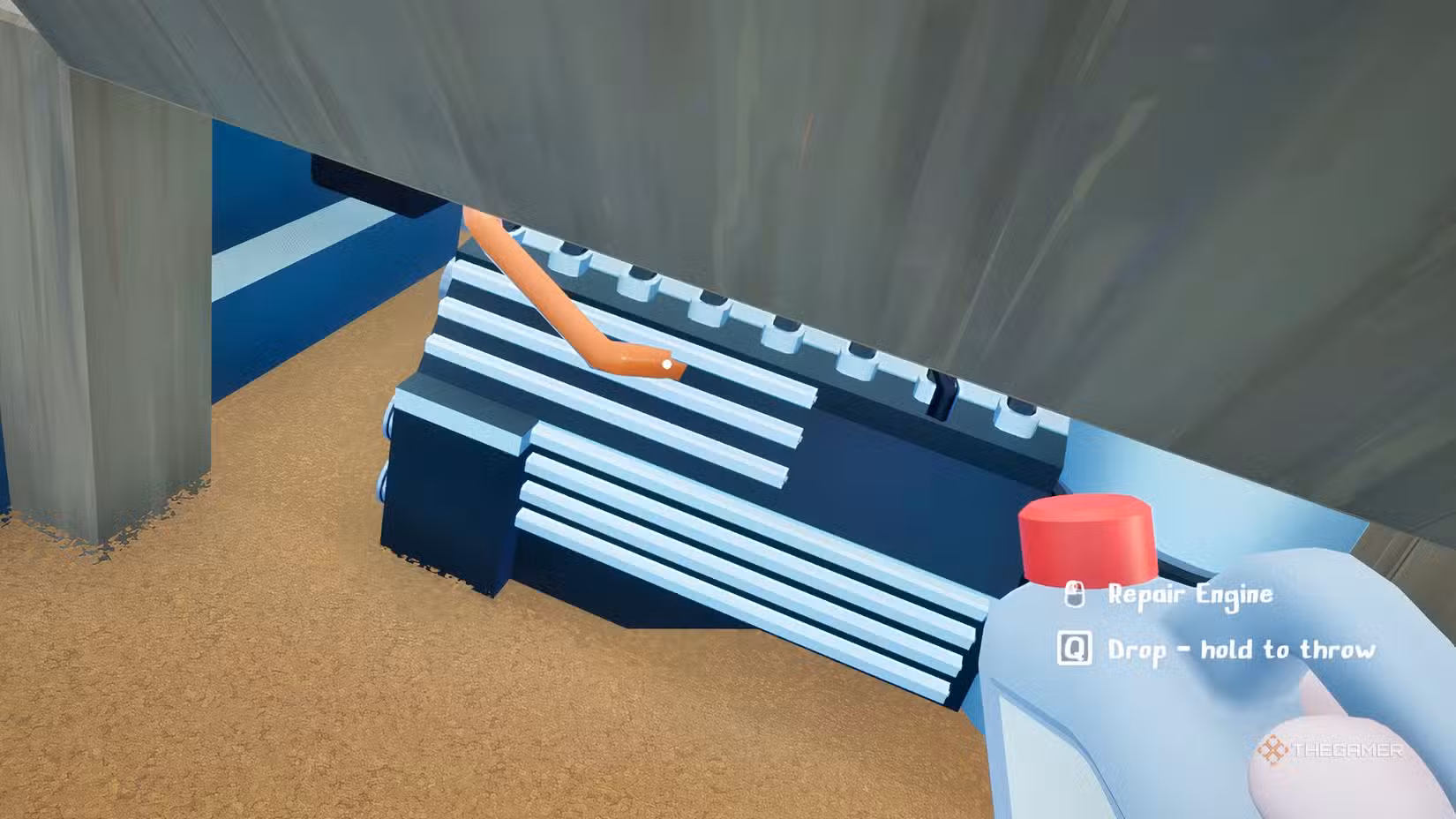 You’ll know when your engine needs fixing by looking at the damage bar at the top of the screen. If it turns red, your engine has taken a beating. When possible, grab some motor oil to help repair it.