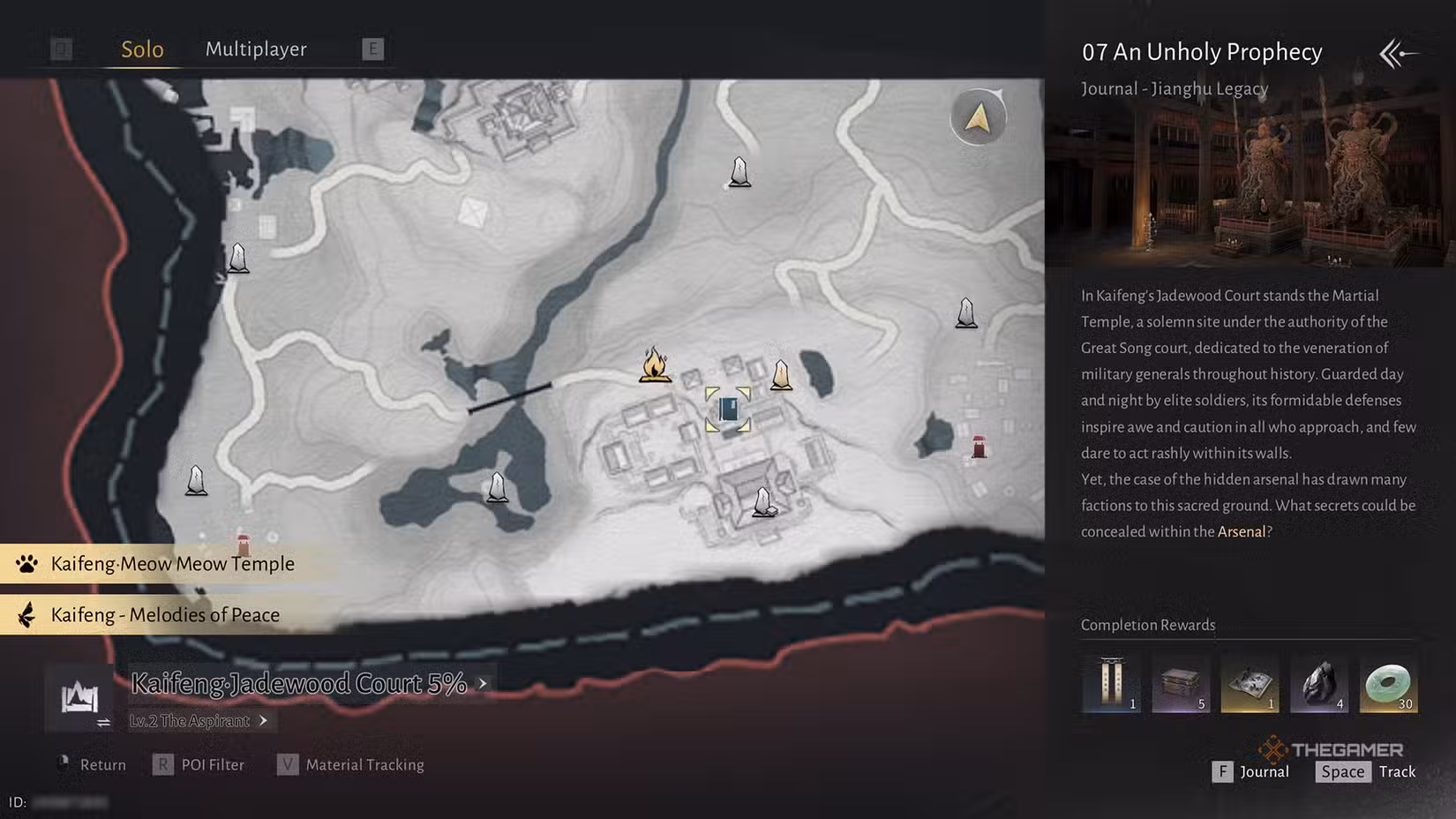 An Unholy Prophecy is the seventh Lost Chapter in the Kaifeng region of Where Winds Meet. After hearing rumors about a hidden weapons cache at the Martial Temple in Kaifeng, the Young Wanderer begins their investigation and encounters a Mysterious Painter.