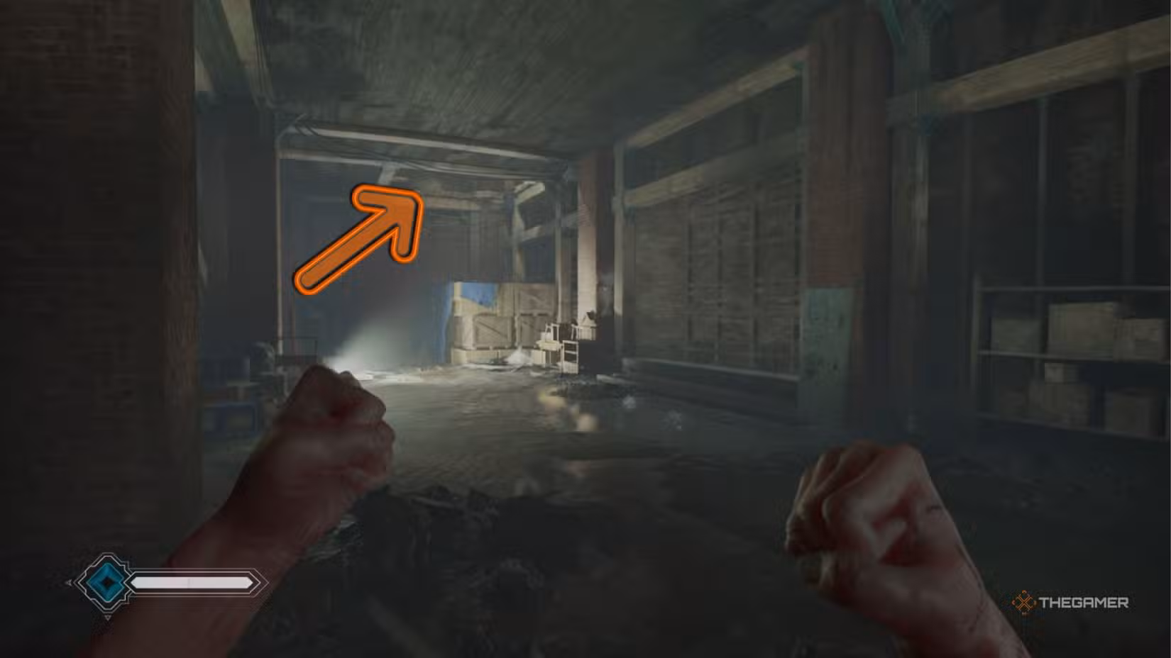 After defeating the second officer, follow the straightforward path until you arrive at a larger room with stairs. However, the stairs will be blocked, so you’ll need to jump onto some boxes and then leap through the corner gap to reach the upper floor. Moving through this corridor, a cutscene triggers, introducing Fabien.