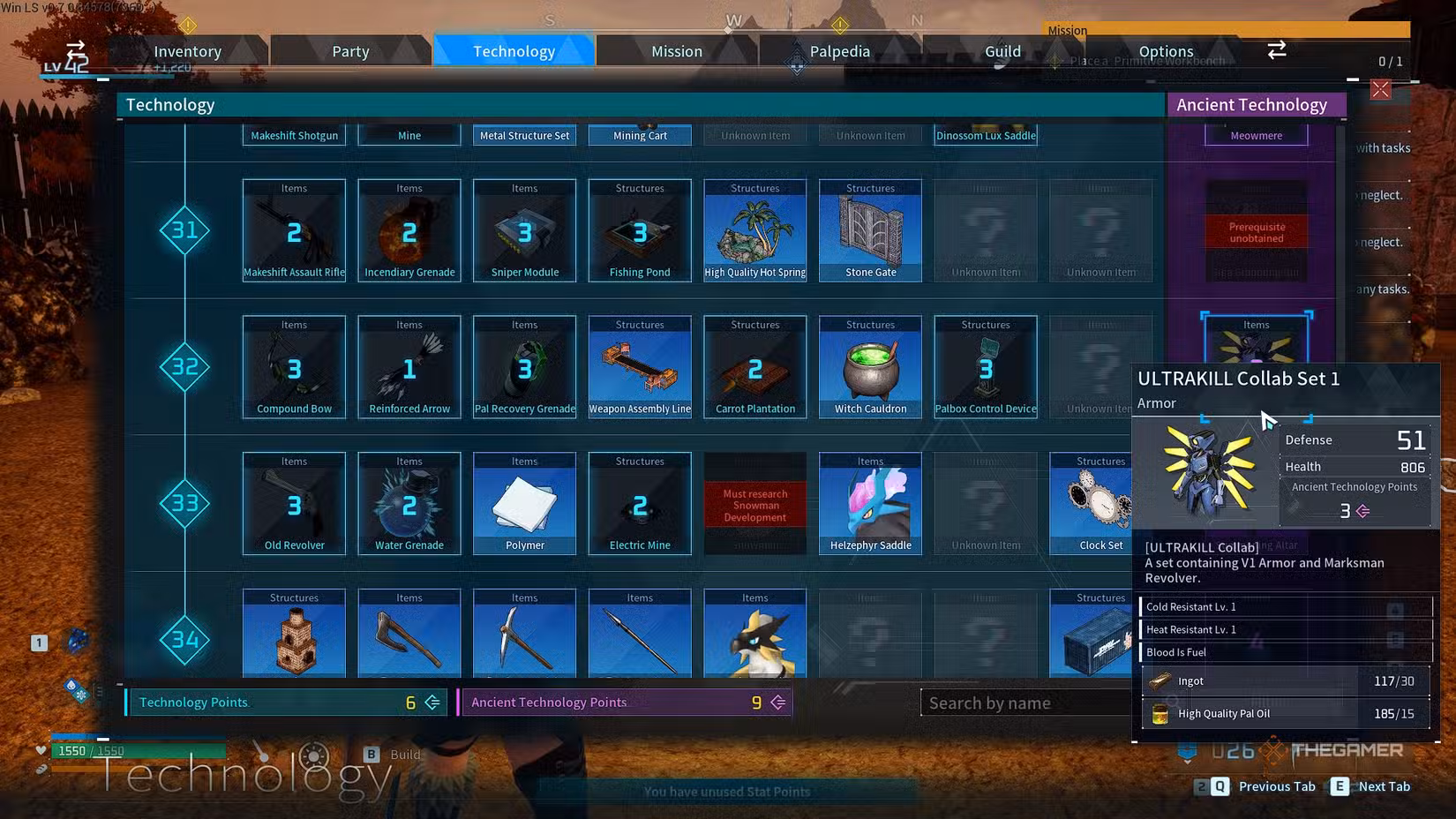 | Ultrakill V1 Armor | Ingot (30), High-Quality Pal Oil (15) |
