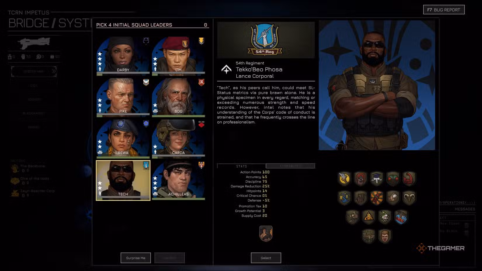 At the start of the game, you select up to four squad leaders to form your initial squads. More can be added later, but their roles remain the same. Squad Leaders are unique individuals who influence how their entire squad operates.
