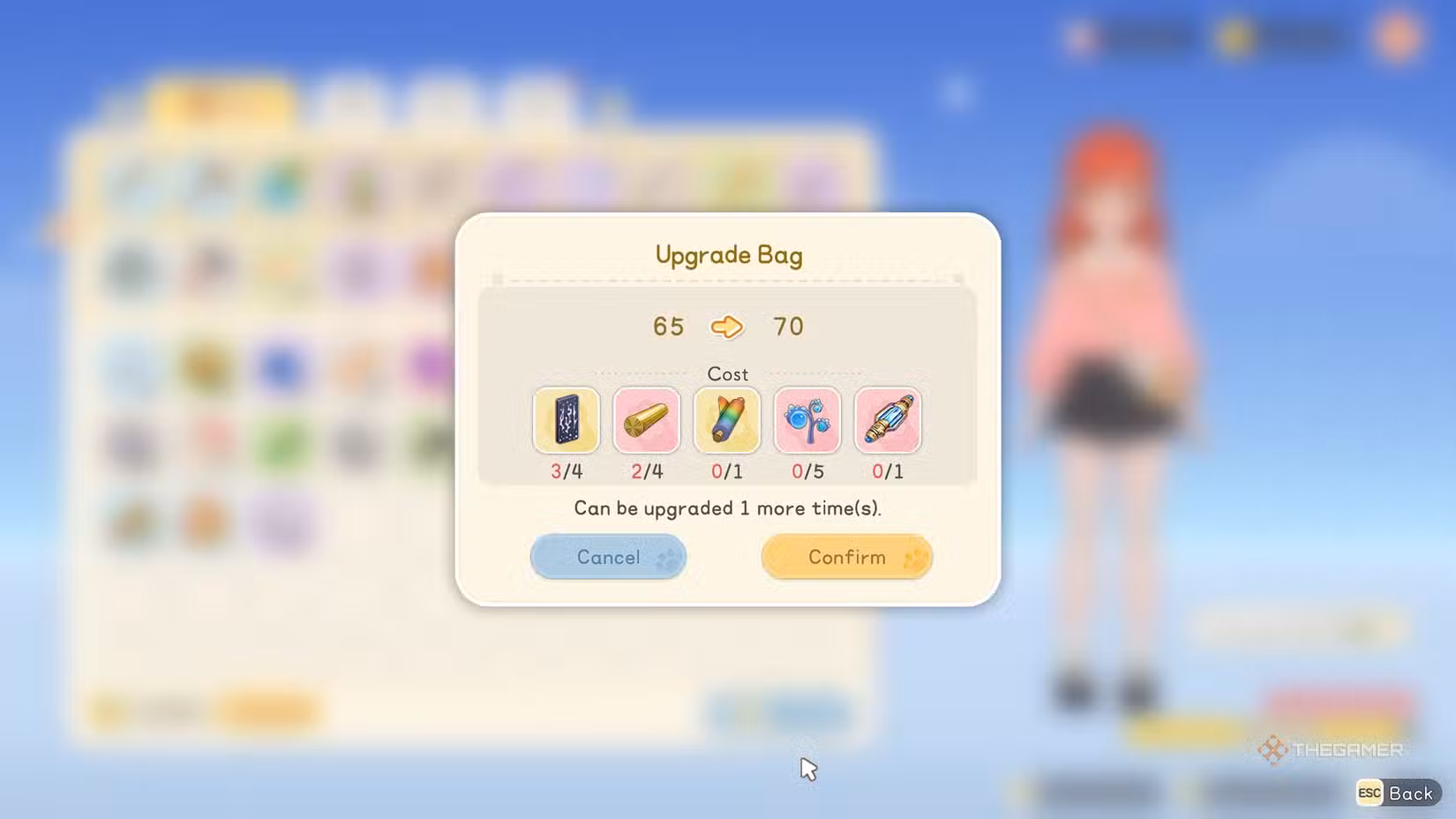 Luckily, you can increase your inventory capacity. To do this, open your bag and tap the “Expand” button at the bottom left. This will bring up a menu showing the materials needed to add more slots to your bag.