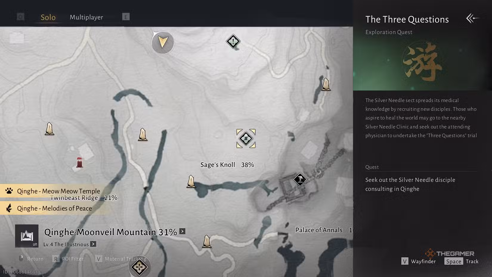When you hover over the Silver Needle option in the Sect menu, you’ll get a hint on where to find a contact for the group. Joining is straightforward: impress this person, and finding Dr. Yuan becomes easier than you might think. To meet him, head to Sage Knoll in the south part of Qinghe, not the northern clinic. Inside, you’ll see Dr. Yuan dressed in white robes behind a desk. Talk to him about joining the Silver Needle Sect, and he’ll ask you to answer three questions.