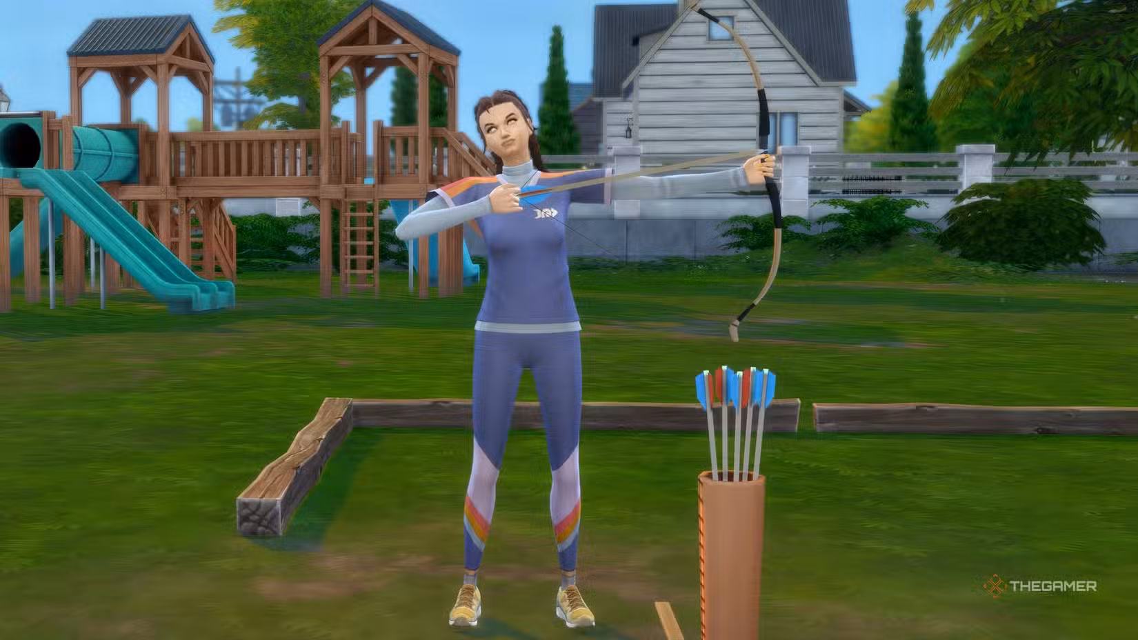In The Sims 4: Adventure Awaits, players can now have their Sims try archery. This activity is open to children and older, featuring a five-level skill that can be developed. Kids often return from Camp Gibbi Gibbi with new archery abilities, and there are also neighborhood competitions tied to the Fitness Festival.