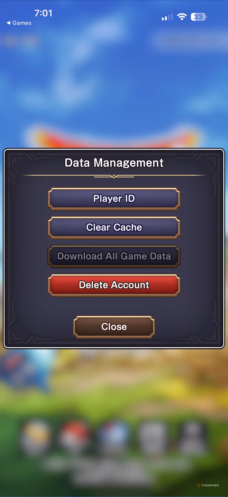 - On the title screen, choose “Manage Data,” then select “Delete Account.”