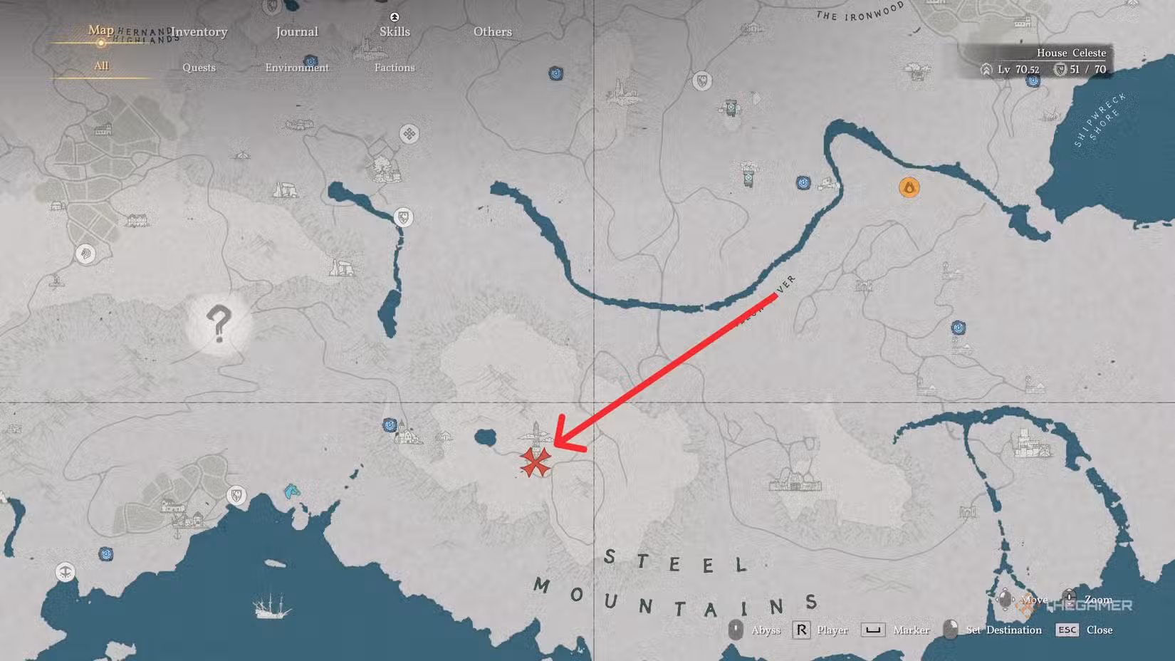 To locate the Spire of Insight, travel southeast of Hernand toward the Steel Mountains. The tower is directly east of a small lake and is quite large, making it easy to spot. Be aware that goblin zealots patrol the area. While they can be handled individually, they tend to rely on numbers to overpower you. Luckily, you can reach and complete this tower early in your gameplay, so there’s no need to delay.