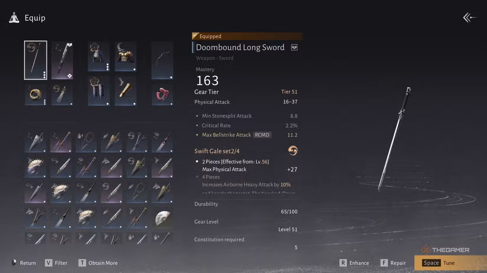 Always keep your highest tier gear equipped and tuned because higher-tier equipment can be upgraded to surpass lower-tier gear at any time.