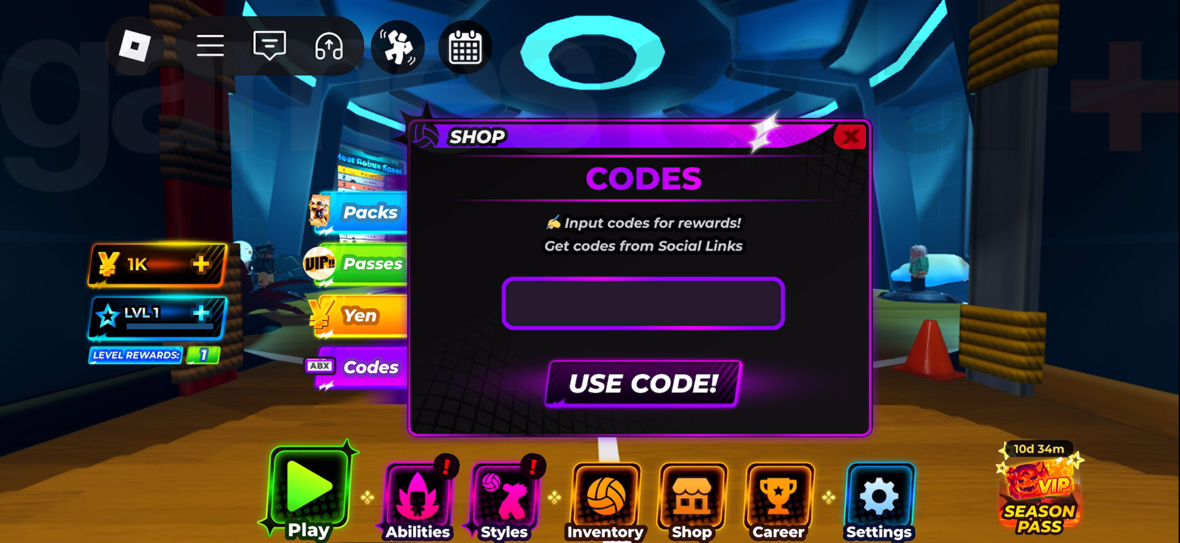 To claim a code, start the game on Roblox and tap the orange Shop icon at the bottom. In the shop menu, select the purple Codes tab on the left to open the code entry box. Type your code into the box and press the Use Code! button. Remember, you need to be at least Level 15 to redeem codes. If you aren’t, a warning will remind you of this requirement.