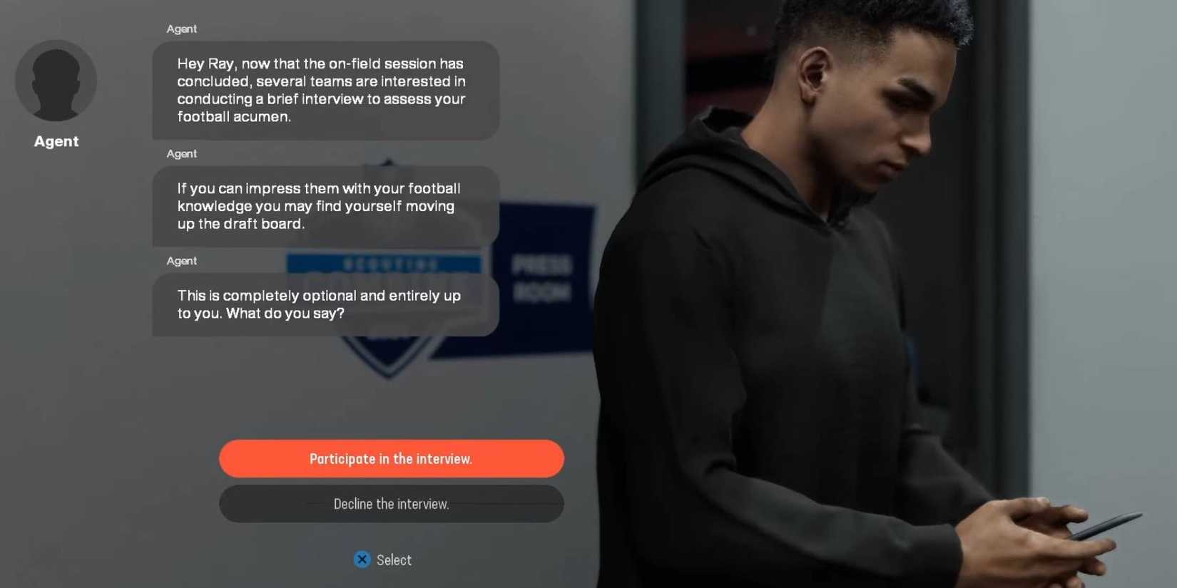 You can choose to skip the interview, but missing it might prevent you from increasing your draft ranking. If you skip, your prospects won’t be hurt after the physical tests, but you’ll miss a chance to improve your standing.