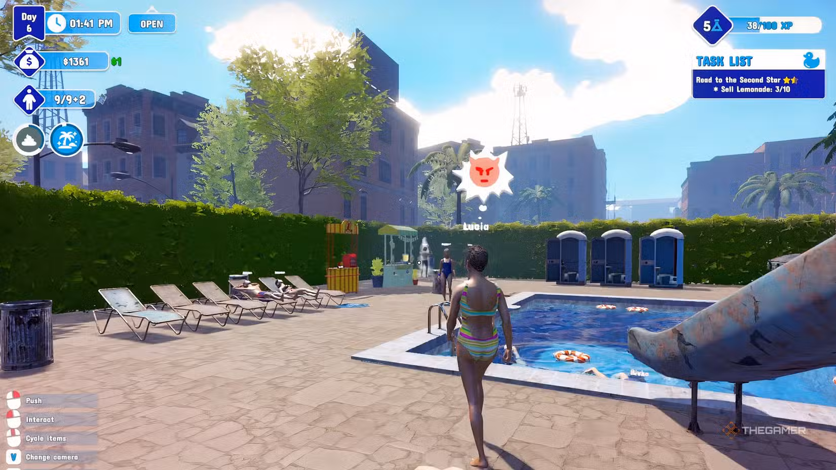 An annoying but funny part of the game is dealing with troublemaking guests. You can spot them by looking for the devil emoji above their heads. These visitors may sneak in without paying or leave a “present” in the pool. Always be attentive to the emoji—whether they’ve done something or not. If you see it, remove them immediately to prevent further damage or mess. Use the boxing glove at the front desk for an extra punch.