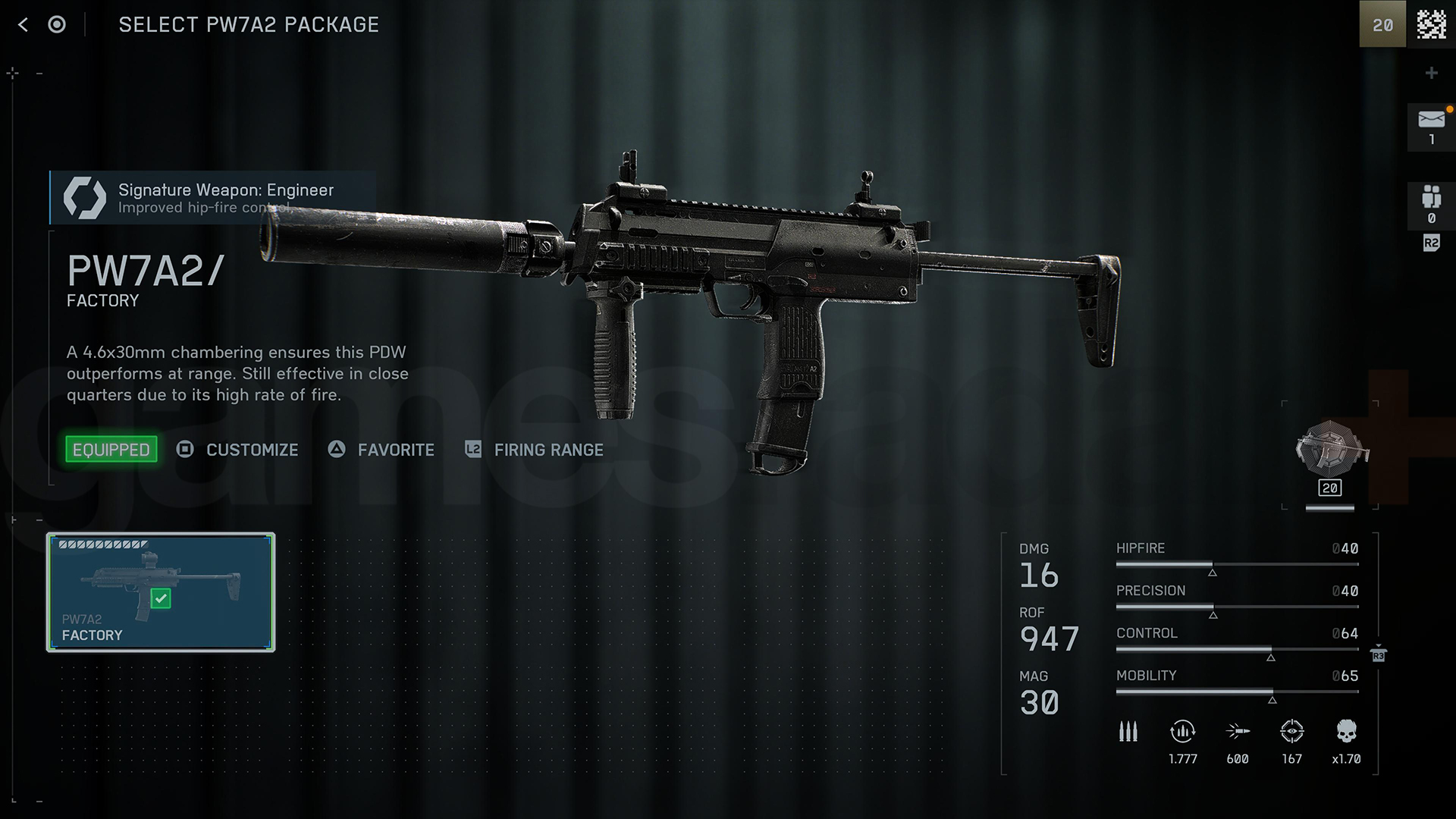 The PW7A2 SMG stands out as a top choice right now. Its versatility at both short and mid-ranges, combined with a silencer, makes it ideal since Engineers often need to reposition quickly to stay near vehicles. It offers good control and solid damage, making it a reliable weapon.