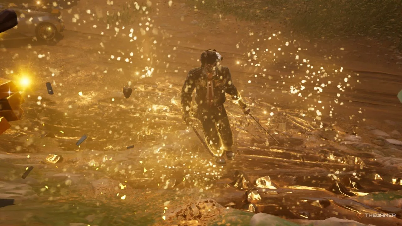 Also on the western part of the island, the water here is imbued with gold, likely due to the abundant ore. Diving into the Gold River water will also activate the Gold Rush effect, though unfortunately, you won’t collect any Gold Bars.