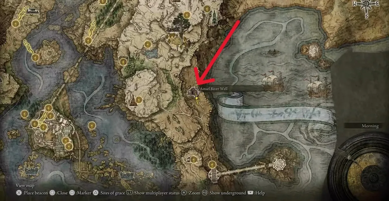 To reach this location, start at the Ainsel River entrance, situated in eastern Liurnia, just east of the Academy of Raya Lucaria.
