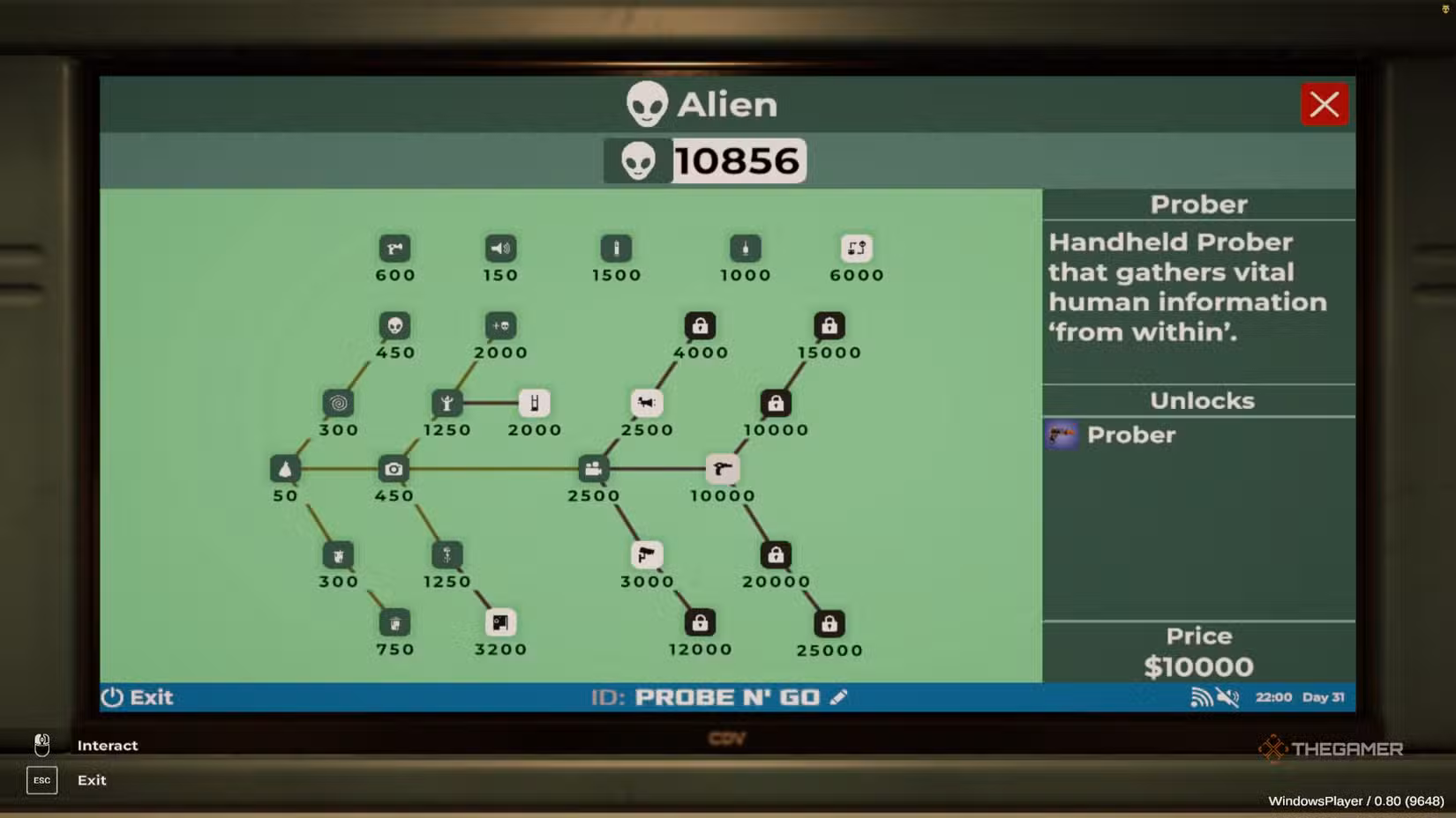 One of these items is the Prober. True to alien style, probing customers with it provides you with important data to improve your gas station and help with your invasion plans.
