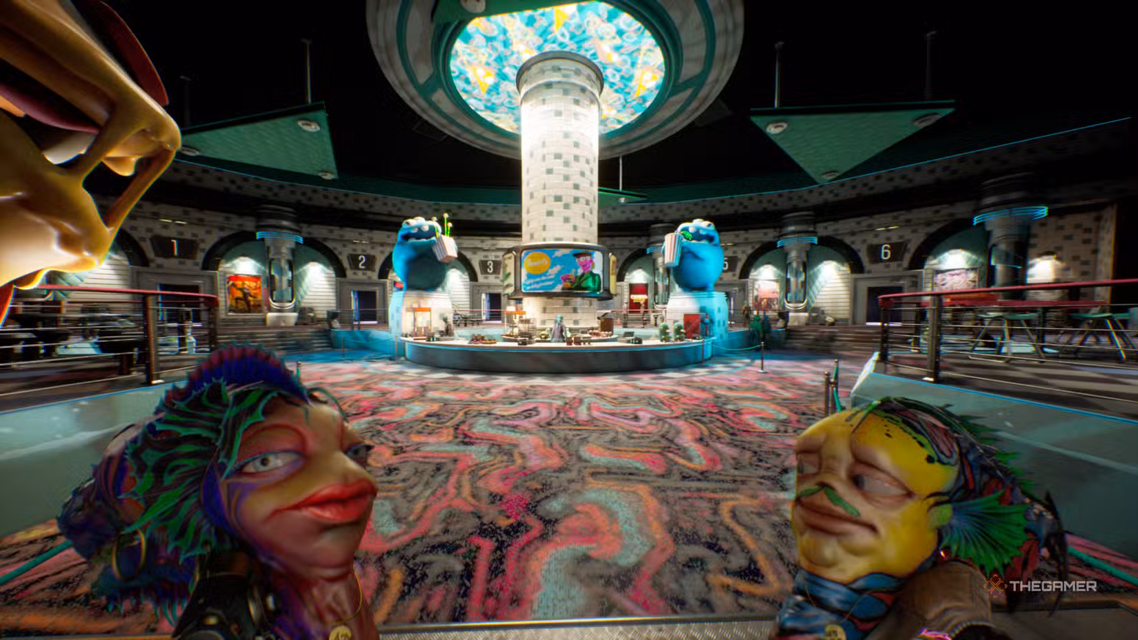 You can’t do much in the lounge, but you can grab some popcorn at the concessions stand before heading to the movies. Near the arcade area, there’s a Lublox sitting on a chair you can collect—use it to buy weapon upgrades or anything else you might need.