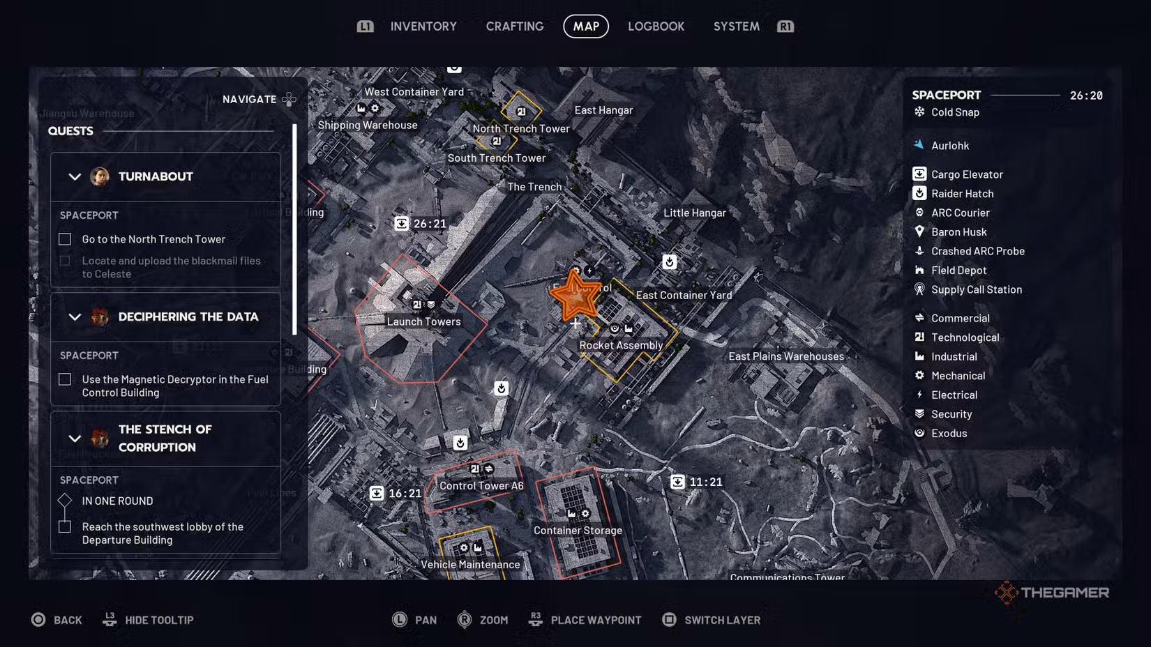 Deciphering this data is a quest assigned to Shani and takes place entirely in Spaceport. Head there and go to the Fuel Control Building on the northeast side of the map, next to Rocket Assembly.