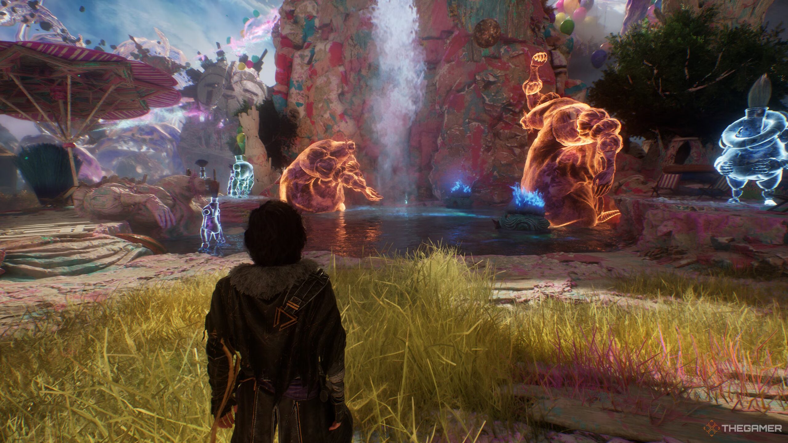 | Overcharge | Use 3 gradient charges at turn start to deal 200% damage. | Exit the carousel area through the large doors into the final big outdoor section of Verso’s Draft. Follow the water past a turtle enemy in a wagon. Climb toy cubes and continue left for a candy prize. | ![]() |