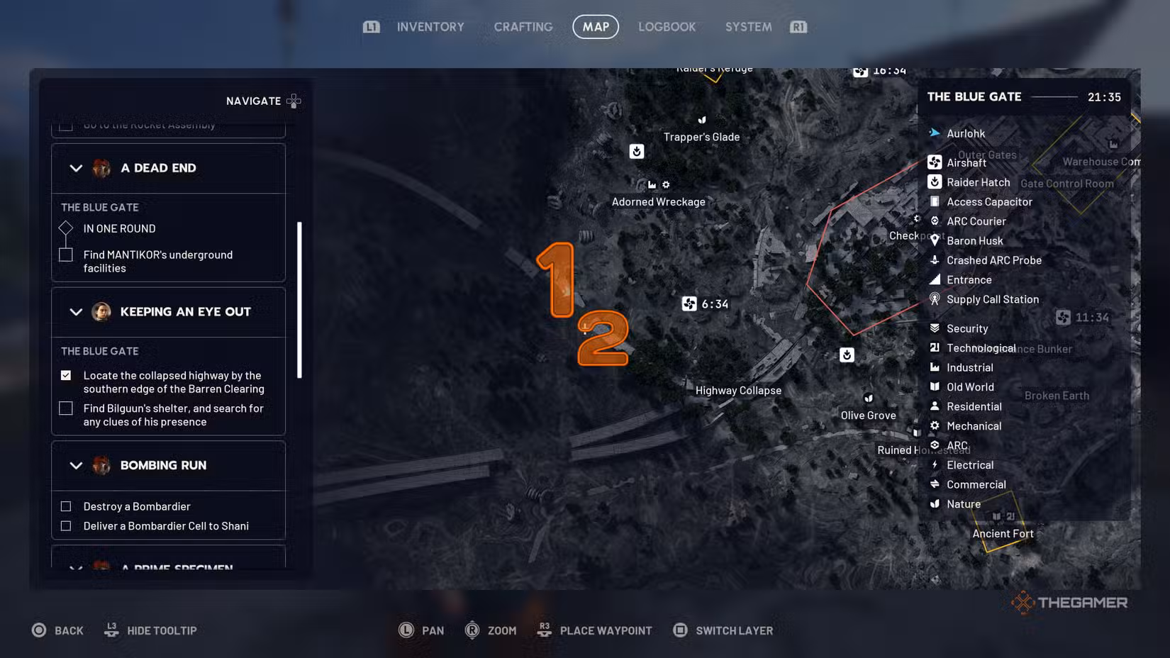 Your first task is to find the collapsed highway at the southwestern end of the Barren Clearing. The specific wreckage you need is located west of the Forest Airshaft, near the map’s edge. Simply walking up to this wreckage will automatically complete this part of the quest.