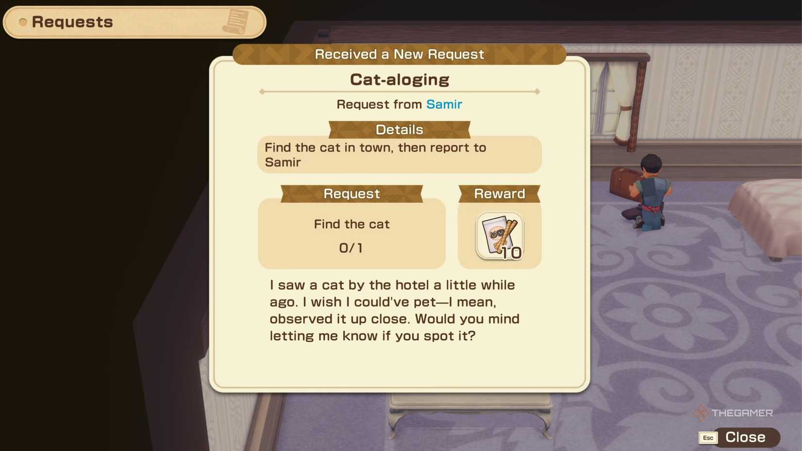 Most of these requests are simple fetch quests, but some ask you to visit a location and find a particular item. One such request is cataloging, where you’ll need to locate a specific cat. If you’re trying to find the cat for this request, the process isn’t complicated—you won’t have to look very far.