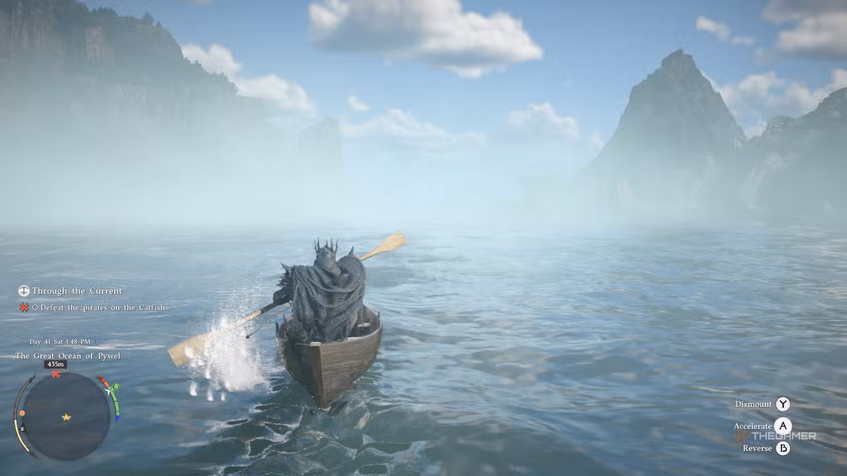 Pilot the boat southeast of Vellua Village into open water. Soon, you’ll spot a pirate ship called the Singing Catfish. Be cautious, as the water around the ship is scattered with mines. Carefully weave around them as you approach.