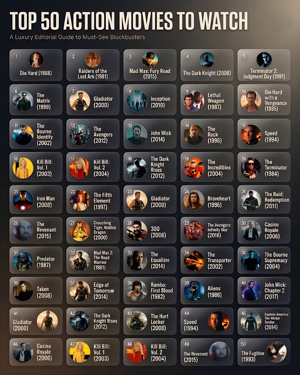 These action movies have defined generations, with groundbreaking fight choreography, compelling stories, and unforgettable characters. Whether it’s modern blockbusters or timeless classics, these films continue to thrill audiences in 2025.