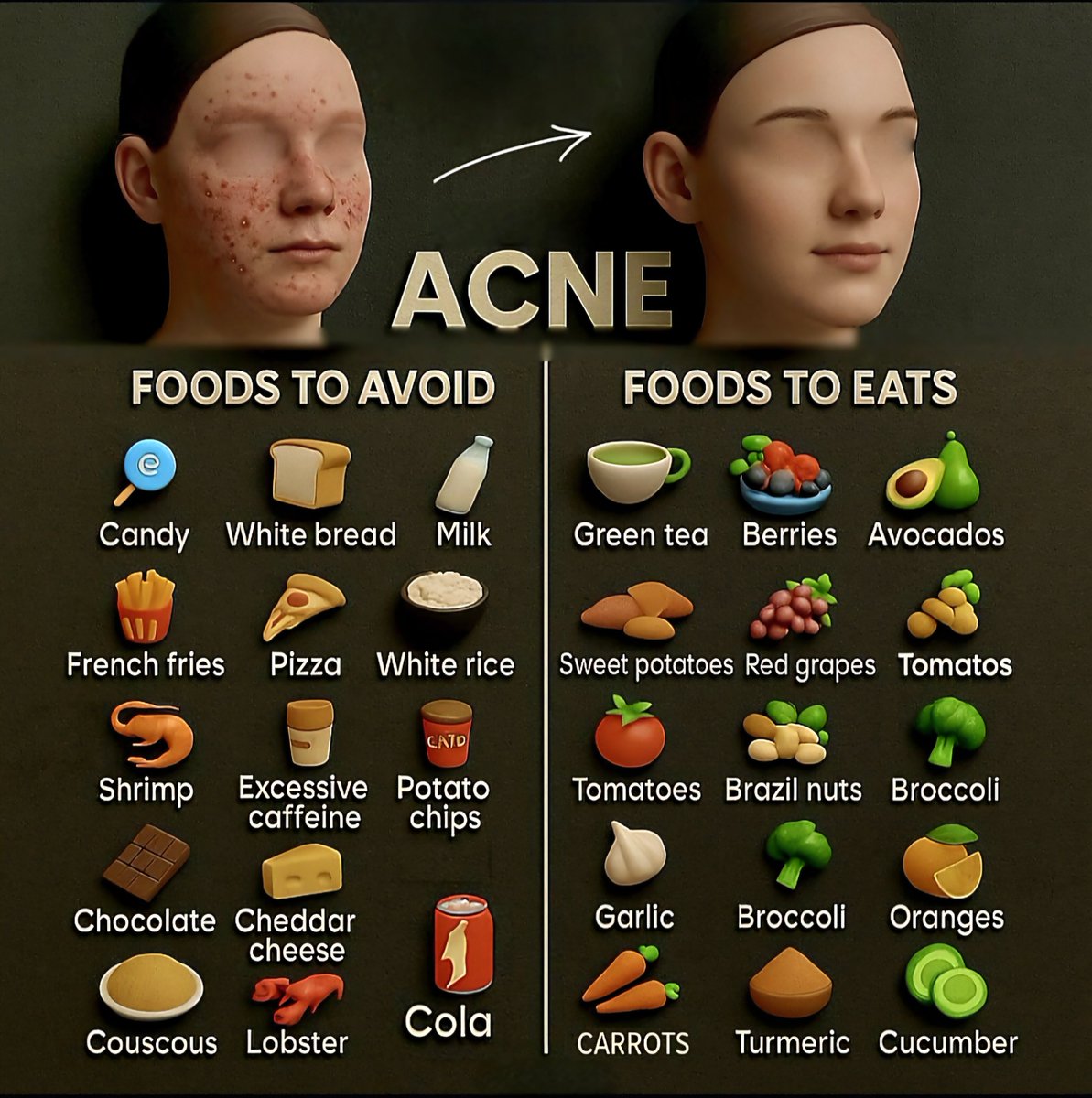 Adjusting your diet remains one of the most effective ways to control acne and support healthy skin. Limiting sugary, processed, and fried foods while increasing your intake of antioxidant-rich fruits, vegetables, nuts, and spices can make a significant difference. Staying mindful of your nutrition, along with proper skincare, can lead to a clearer, more radiant complexion this year.
