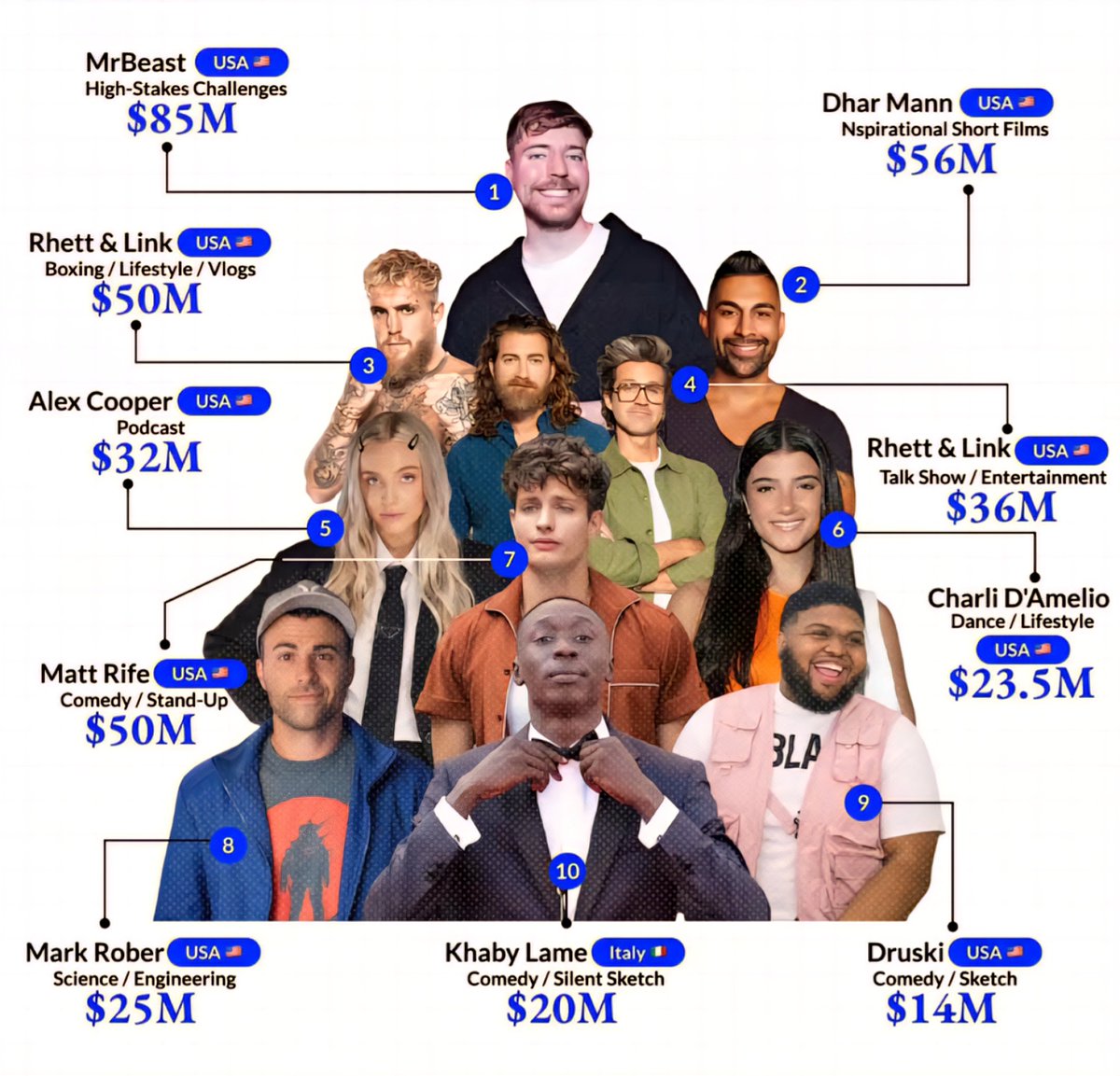 1. MrBeast Dominates the List with an Impressive $85 Million