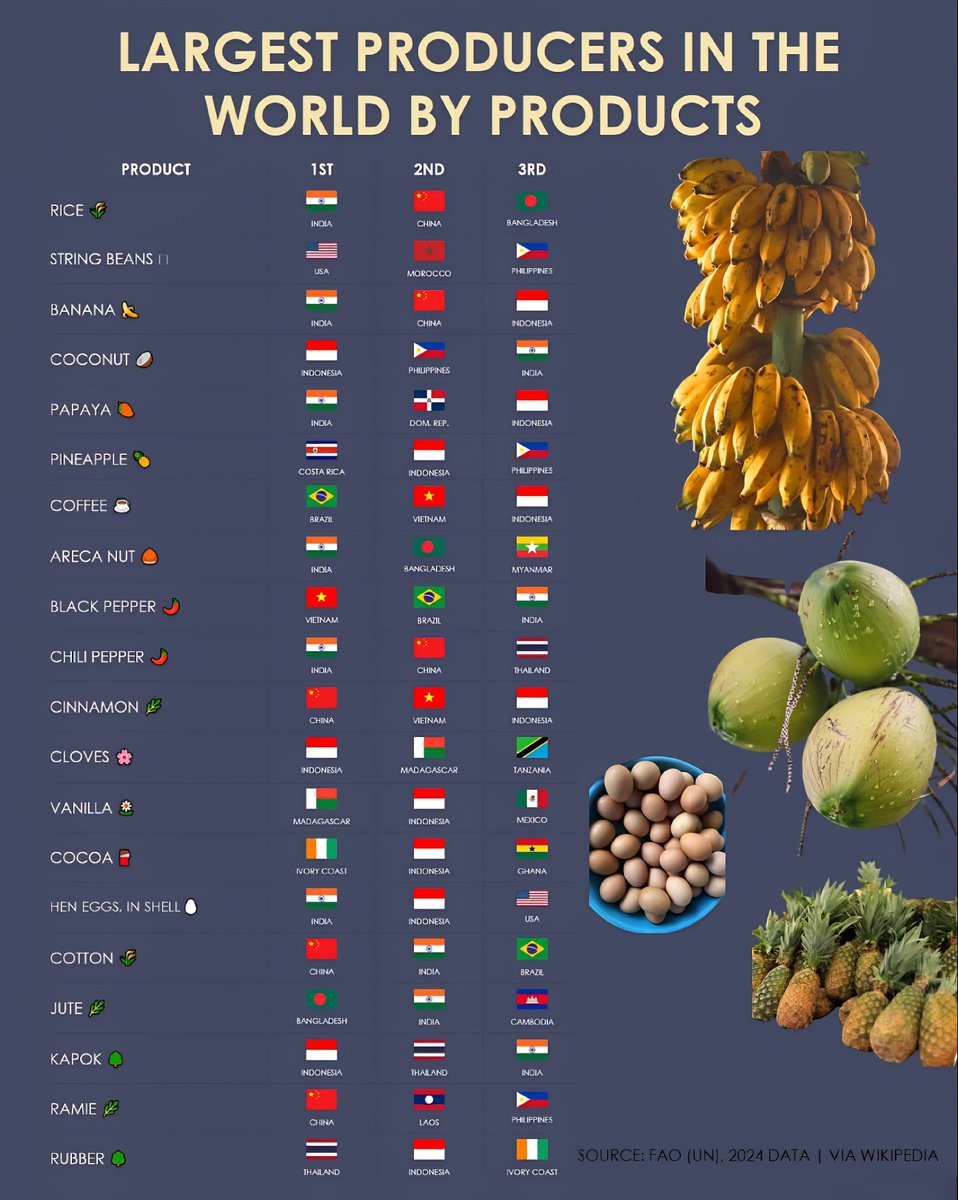 Note: This list reflects the latest data on the leading countries in various product productions as of 2025, highlighting the importance of these nations in the global agricultural and manufacturing sectors.